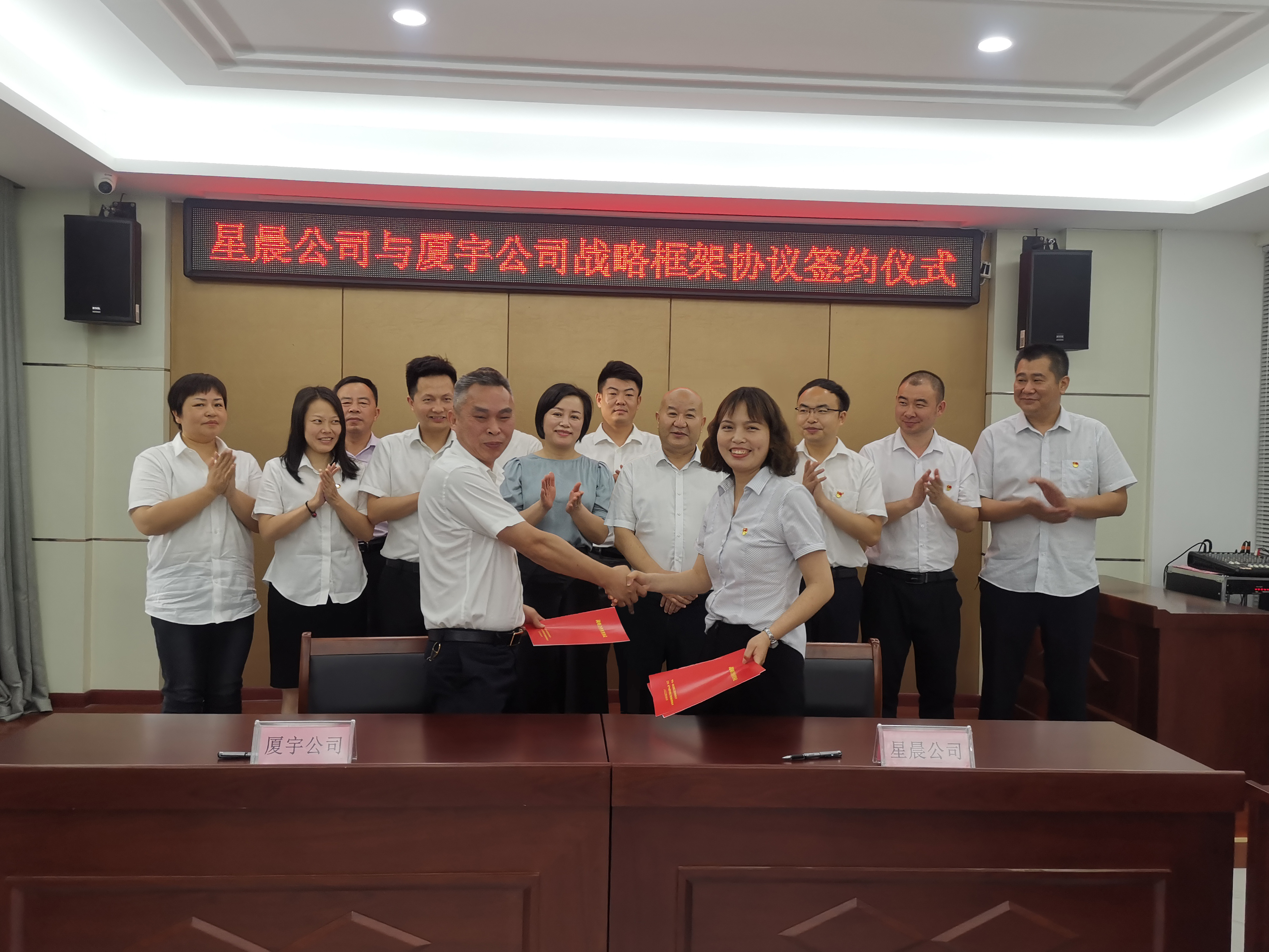 致辭結束后,星晨公司胡蓉董事長與廈宇公司王勇董事長代表雙方企業(yè)在合同上正式簽約,這標志著雙方戰(zhàn)略合作正式開啟。