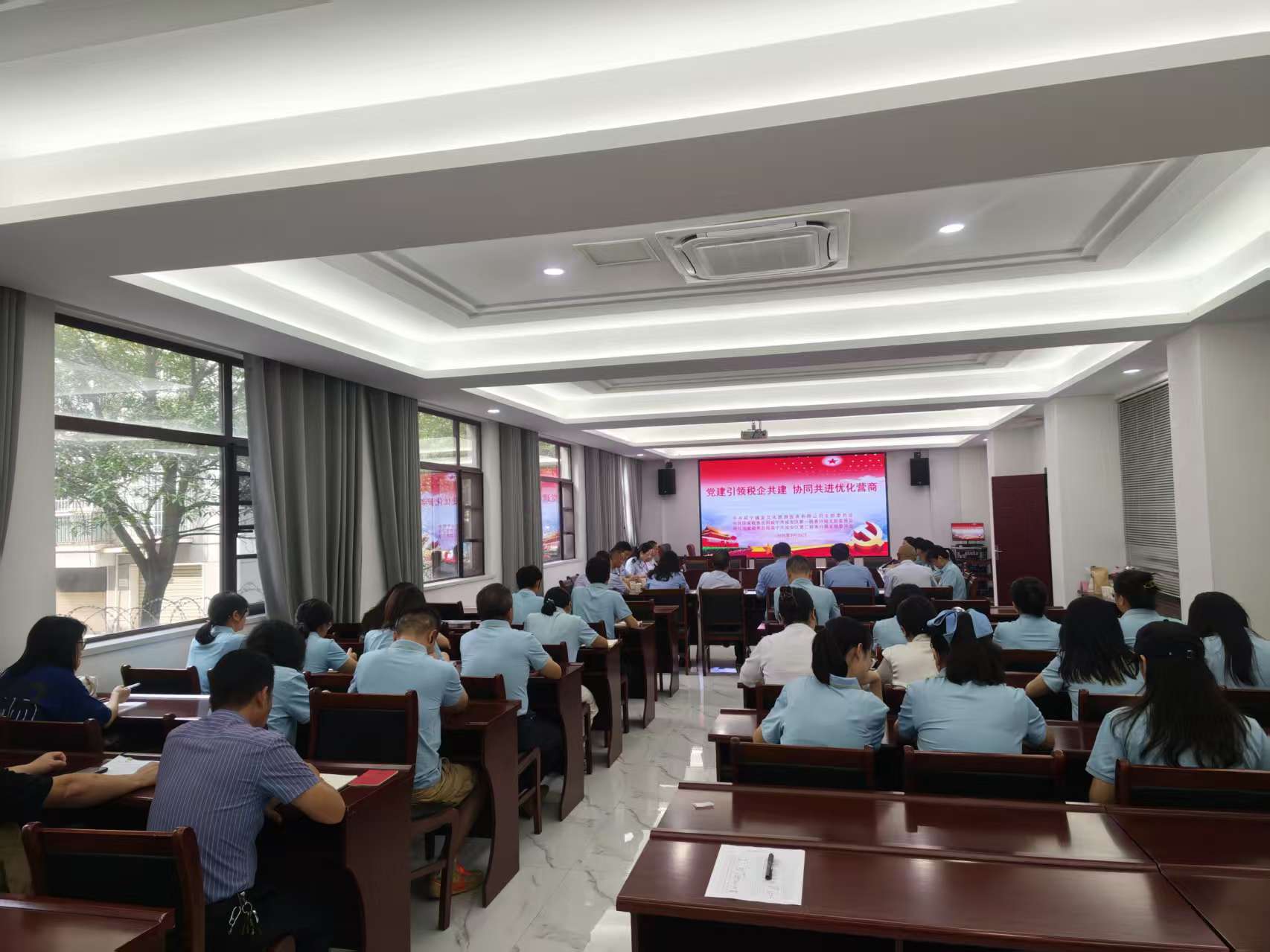 為深入貫徹黨的二十大精神,構(gòu)建“親清”稅企關(guān)系、注入紅色動(dòng)能。9月28日下午,文旅公司黨支部聯(lián)合咸安區(qū)稅務(wù)局第一、第二分局黨支部開展主題共建活動(dòng),探索黨建引領(lǐng)業(yè)務(wù)發(fā)展新路徑,活動(dòng)由公司黨支部書記胡蓉主持。
