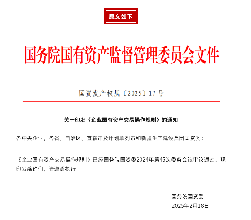 下一步,國(guó)務(wù)院國(guó)資委將加強(qiáng)對(duì)《規(guī)則》的解讀宣貫,促進(jìn)企業(yè)國(guó)有資產(chǎn)規(guī)范順暢流轉(zhuǎn)、資源配置效率持續(xù)提升。